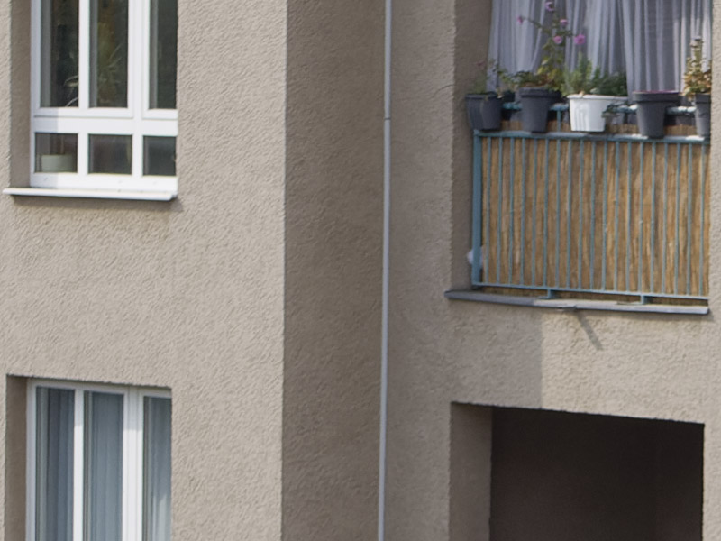 Ich fand die Ergebnisse im Nahbereich überzeugender als bei den Fotos von der Fassade. Am Tag des Aufnehmens der Bilderserie war es warm und am Tag zuvor hatte es geregnet. Vielleicht haben Dunst oder das Flimmern der Luft vor der Fassade die Bildqualität etwas beeinträchtigt.