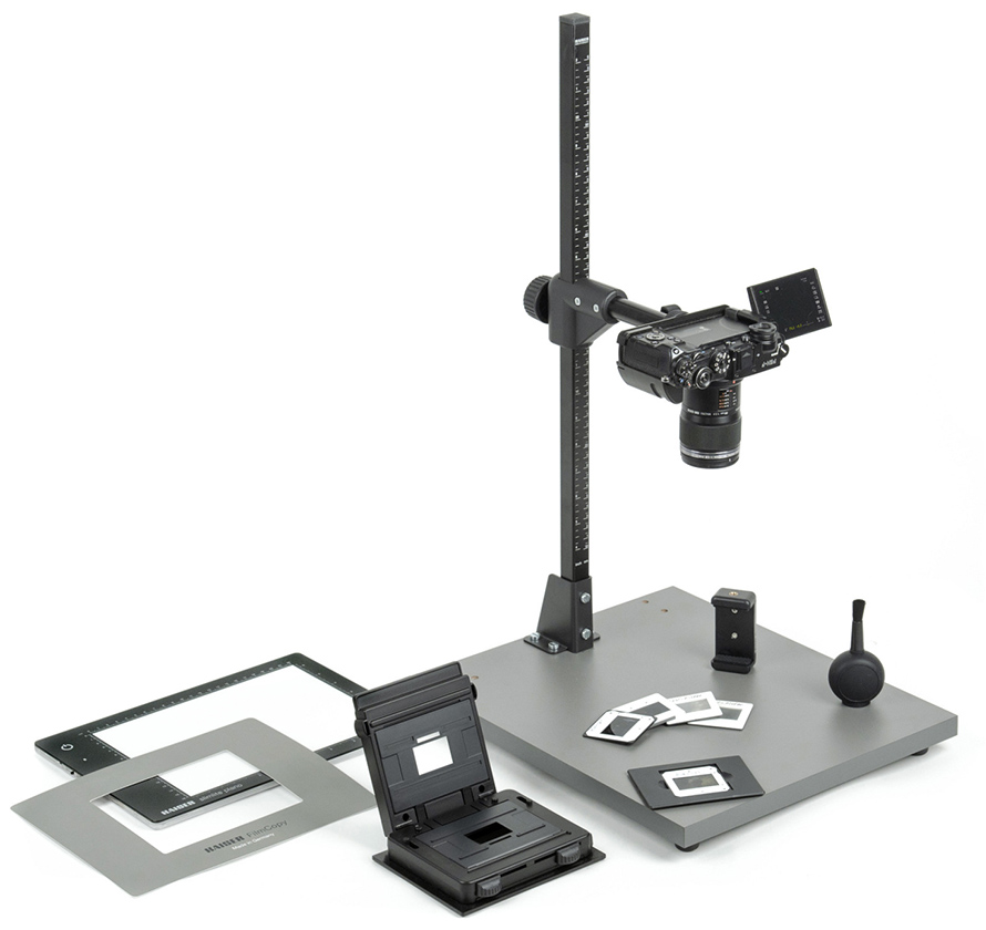 Das Kaiser DigiCopy Vario Set richtet sich an Nutzer, die eine unkomplizierte und kostengünstige Lösung zur Digitalisierung von Dias und Negativen suchen, ohne selber basteln zu müssen. In Kombination mit einem hochwertigen Smartphone oder einer kompakten Systemkamera mit Makroobjektiv bietet das Set die notwendigen Komponenten für eine praxistaugliche Methode zum Scannen mit der Digitalkamera. Das dimmbare LED-Leuchtpaneel und das Reprostativ können auch für andere Aufgaben eingesetzt werden.Das Kaiser reprokid ist das kleinste Reprostativ des Herstellers. Es ist eine Reaktion auf das Aufkommen ähnlicher Produkte anderer Hersteller, die spezielle Hilfsmittel zum Digitalisieren von Negativen und Dias mit Kameras anbieten.
