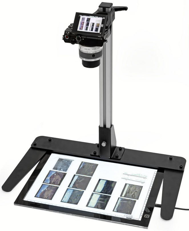 Der Valoi Essential Copy Stand v2 ist ein kompaktes Reprostativ für das Digitalisieren von Dias, Negativen und Dokumenten. Begriffe wie Reprostand, Reprosäule oder Copy Stand werden im Fotobereich synonym verwendet. Es dient vor allem dazu, eine Kamera senkrecht nach unten auf eine Vorlage zu richten.