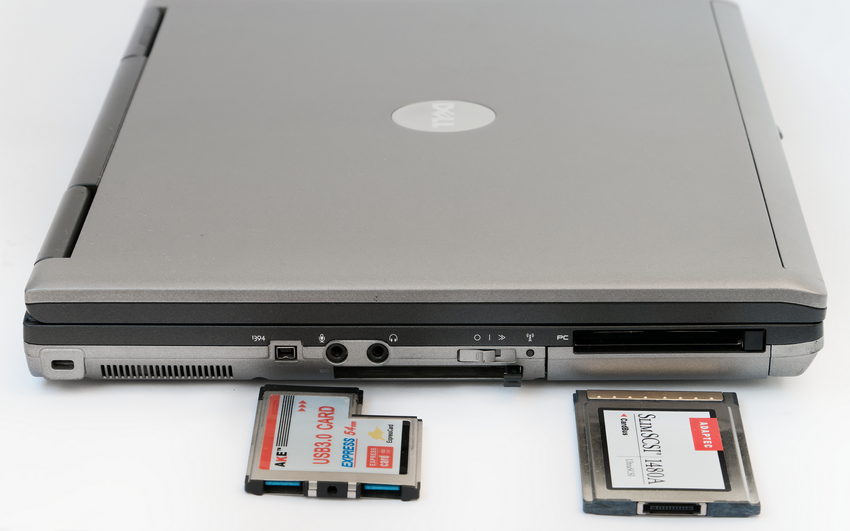 Der Dell Latitude D830 ist ein Anschlusswunder. Neben alten Schnittstellen, wie FireWire, können die Schächte für PCMCIA und ExpressCard genutzt werden, um 2x USB-3.0 und SCSI nachzurüsten.