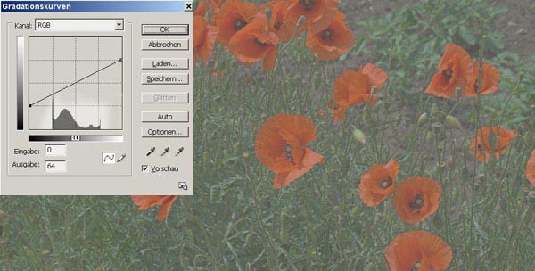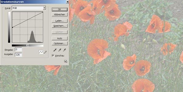 Das Bild mit den Mohnblumen wird aus Tonwerten von Schwarz bis sehr hell gebildet. Das Bild enthält vor allem dunkle bis mittlere Helligkeiten.
