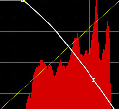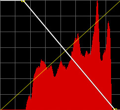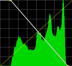 Invertieren - TonwertumkehrungDas Wandeln des Negativs zum farblich stimmigen Positiv erfolgt in drei Schritten mit der Gradationskurve. Im ersten Schritt werden die Tonwerte jedes Kanals umgekehrt. Dazu werden die Schwarzpunkte (links)nach oben und die Weißpunkte (rechts)nach unten verschoben. |