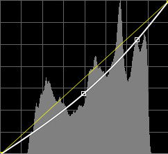 Bei diesem Bild ist eine Beugung der Rot-Kurve richtig. Die Farben stimmen, doch ist das Bild noch zu hell. | ![]() |