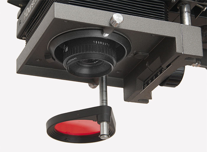 Durst M605 Farbkopf mit 12 V Halogenbirne mit Reflektor als Leuchtquelle. Die verstellbaren Filter können auch zur Kontraststeuerung für Multikontrastpapiere verwendet werden.