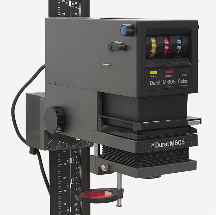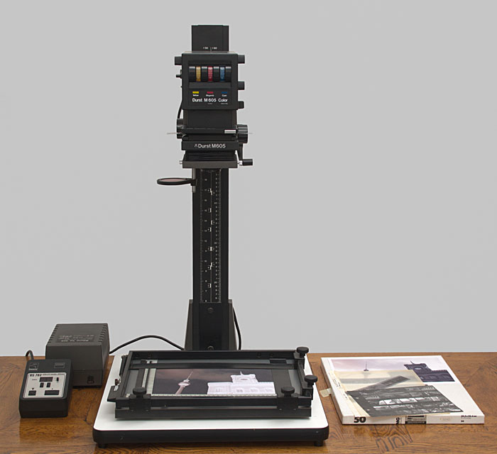 Der Vergrößerer Durst M 605 ist ein modulares Gerät für Negative und Dias bis 6 x 6 cm und kann mit verschiedenen Lichtköpfen, Formatmasken und Objektiven sowohl für Farb- als auch für Schwarzweißvergrößerungen eingesetzt werden. Er wurde 1979 eingeführt. Der Hersteller beschreibt ihn als leistungsfähigen Amateurvergrößerer, der auch professionellen Anforderungen entspricht. Das ist nicht übertreiben, er gehört wirklich zu den besten seiner Klasse.