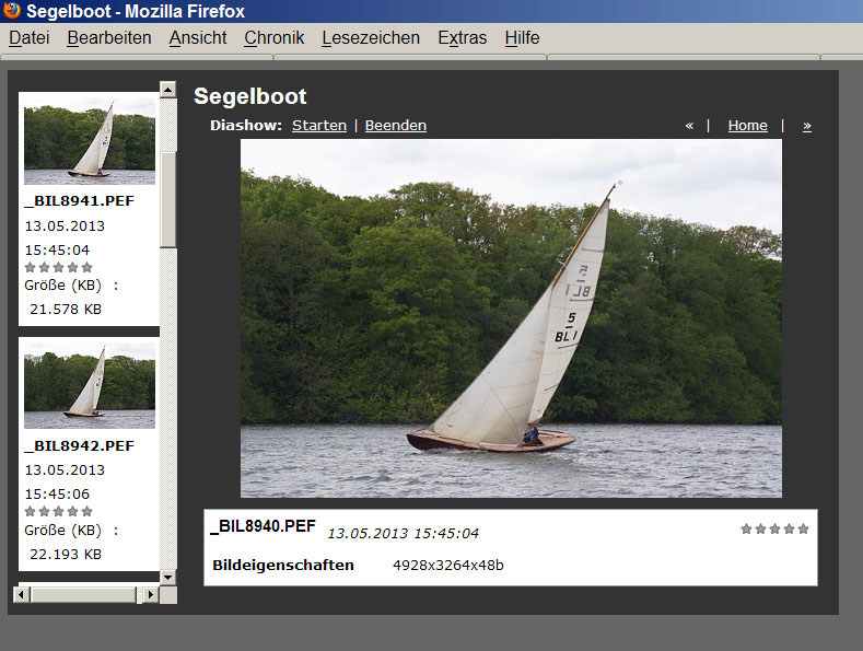 Mitte: Hier werden die Dateien angezeigt. Es gibt vielfältige Ansichtsmöglicheiten wie Miniaturansichten, Listen, Details, Kacheln, Filmstreifen ... etc. In der Praxis düften die Miniaturansichten den Vorrang haben, wenngleich es für einige Arbeiten sinnvoll ist, andere Ansichten zu wählen.