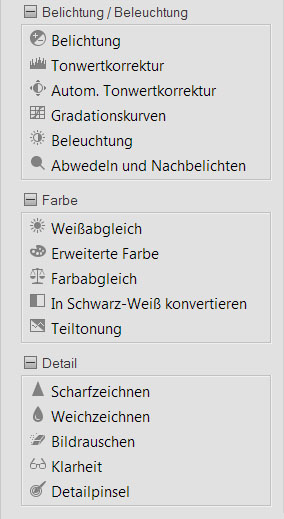 | 1-Step EQ | Der Name dieser Funktion soll besagen, dass eine automatische Belichtungseinstellung mit ACDSees LCE-Technik (Lighting und Contrast Enhancement) realisiert wird. |