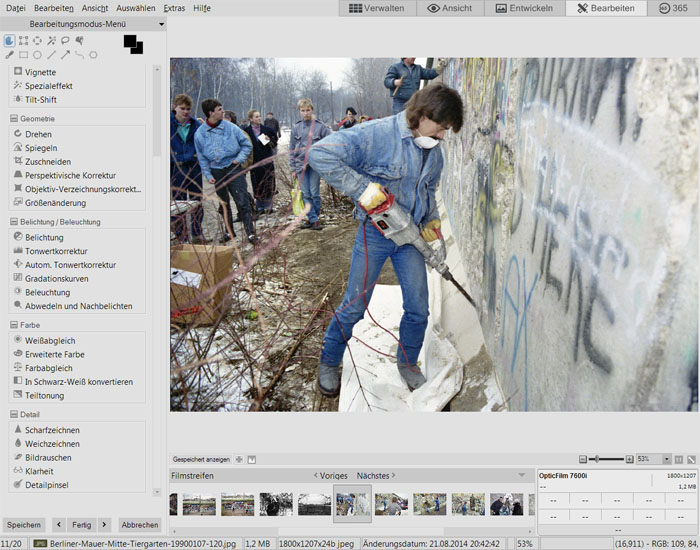 ACDSee Ultimate 8 ist ein RAW-Konverter mit allen Werkzeugen, die derzeit zu den besten dieser Programme gehören, jedoch verzichtet es auf eine automatische Fehlerkorrektur für Objektive. Verzeichnungsfehler und chromatische Aberration (farbige Kanten) werden manuell beseitigt.