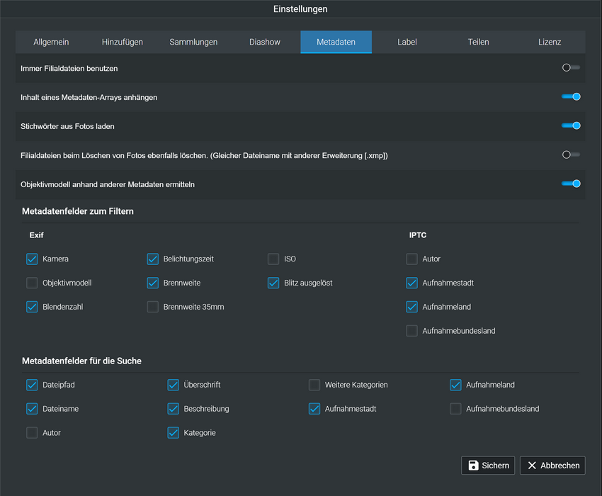 In den Einstellungen wird festgelegt, welche Infos zur Bildersuche berücksichtigt werden. Aktivert man 'Stichwörter aus Fotos laden', ist die Annahme falsch, dass sie zur Bildanalye beitragen. Hier verschenkt Excire noch wichtige Hinweise.