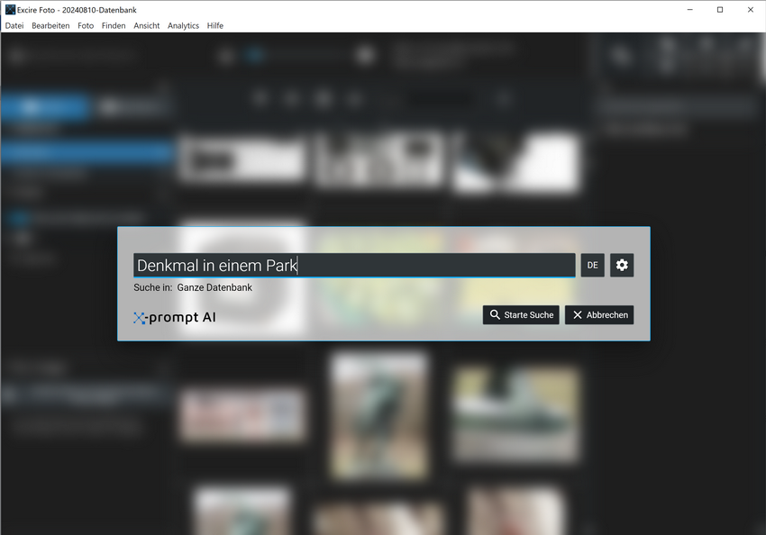 Excire enthält eine Suche nach freien Texten (Promts) wie bei ChatGPT oder in Internet-Suchmaschinen. Die Abfrage kann deutsch oder englisch erfolgen.