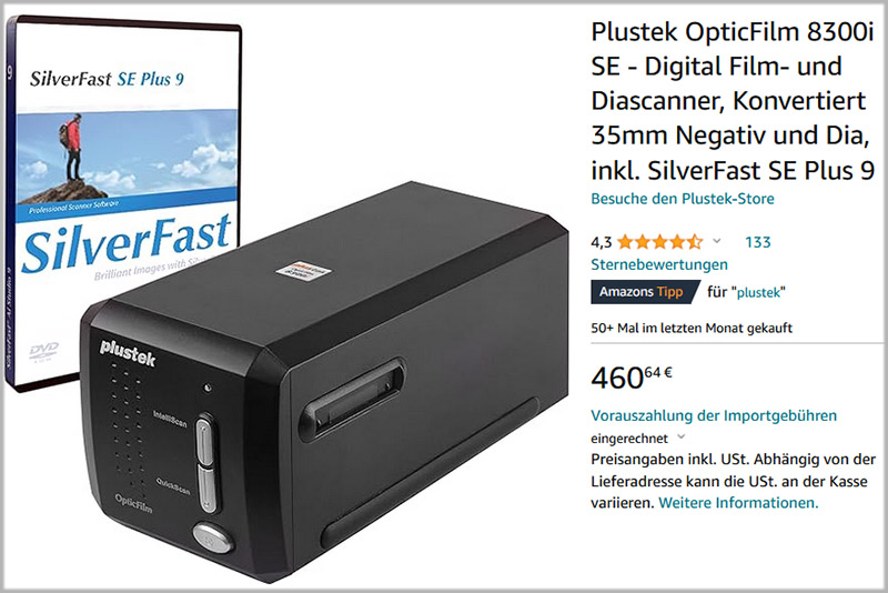 Filmscanner Plustek OpticFilm 8300i mit SilverFast SE Plus 9