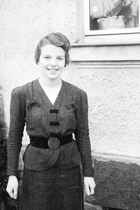 1930'er. Junge Dame, fotografiert auf Kleinbildfilm. Gescannt vom Negativ mit Kratzern. Die Aufnahme ist etwas unscharf.