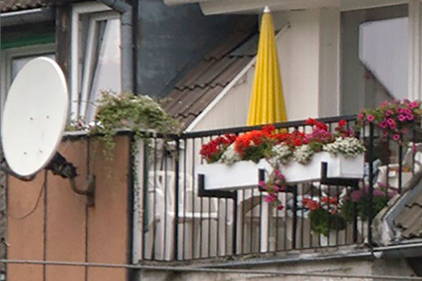 Ausschnitt: 850 x 567 Pixel. Die 6-MP-Datei wurde mit Topaz Photo Ai wurde von der Software mit dem Faktor 2x interpoliert. Das ergab eine 24-MP-Datei. Zusätzlich hatte Topaz Photo Ai die Detaildarstellung optimiert und das Bild geschärft. Die Zeichnung in den Schatten ist besser. Die Verbesserungen sind enorm. Von einer Kamera mit einem 24 Megapixel Sensor würde man keine bessere Abbildung erwarten. Daraus ergibt sich folgender Gedanke: Da wir die Herstellerangaben über Pixelmengen auf Sensoren nicht überprüfen können, wissen wir eigentlich gar nicht, ob sie real existieren oder durch Interpolation zustande kommen. Bei Smartphones ist das kein Geheimnis. Trotz des digitalen Zooms werden meistens Dateien mit ca. 12 Megapixeln ausgegeben, obwohl der relevante Teilbereich des Sensors weniger hatte. Könnte es sein, dass dies auch bei digitalen Systemkameras mit hohen Pixelmengen der Fall ist?
