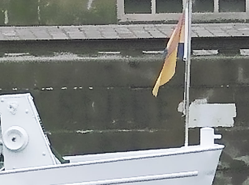 Ausschnitt aus dem Bild. ISO 800. Mit ISO 800 haben die Dateien eine Größe von 2712x1808 Pixel. Zum Vergleich wurde das Bild hochskaliert.
