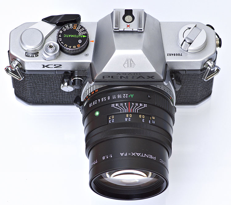 Asahi Pentax K2 Spiegelreflexkamera mit Pentax-FA 1:1.8 77mm