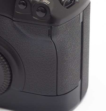 Nein, das ist keine Klappe vor den Einsteckschächten für Speicherkarten. Die braucht eine analoge Kamera nämlich gar nicht. Stattdessen verbergen sich dahinter einige Bedienelemente.