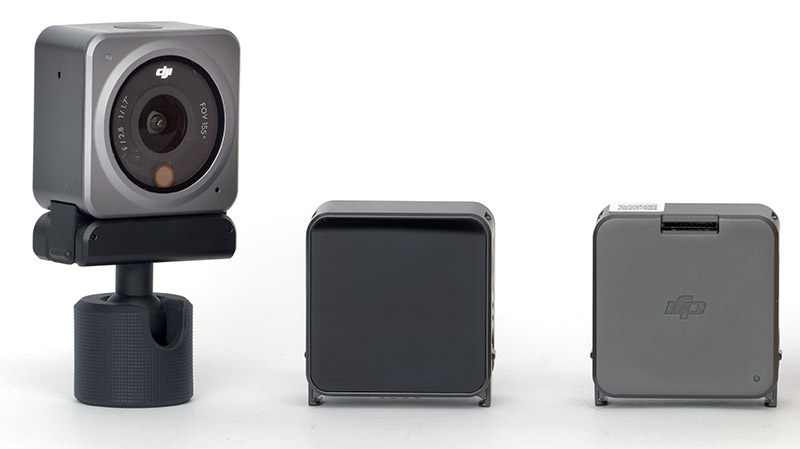 Action 2 auf einer Magnethalterung auf einem Kugelkopf neben dem Bildschirmmodul und Akkumodul