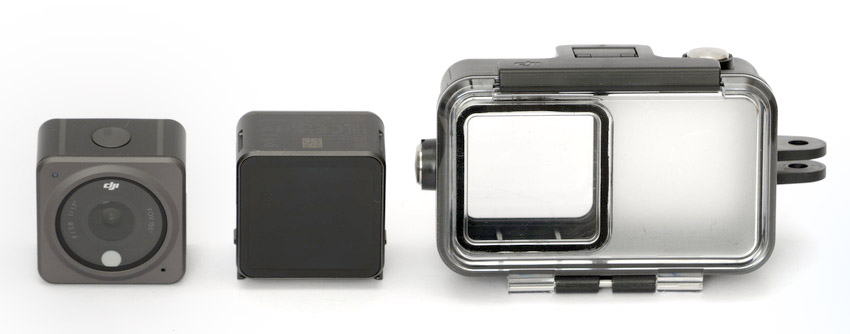 DJI Action 2 mit Akku Modul und Unterwassergehäuse, mit dem eine Wasserdichtigkeit bis 60 Meter gewährleistet sein soll.