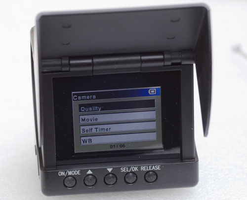 Das Display wird beim Transport von einer Klappe verdeckt, die während der Kameranutzung aufgeklappt wird.