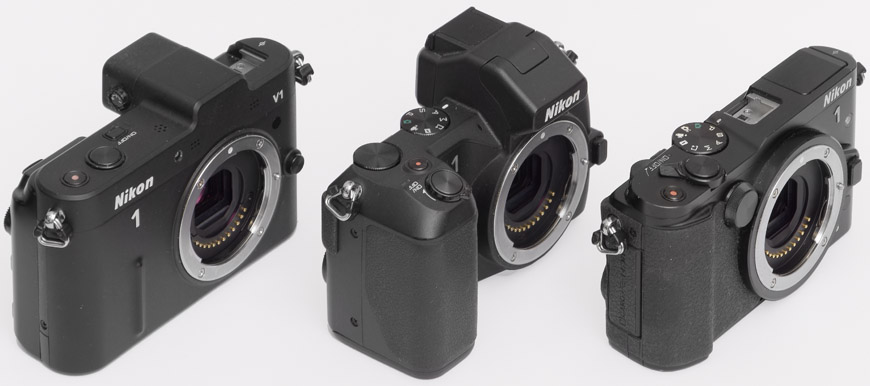Die J1, J2, J3, J4 und J5 Modelle waren preiswerter und kompakter. Sie hatten keine elektronischen Sucher und auch keine Anschlussmöglichkeiten für optionale.