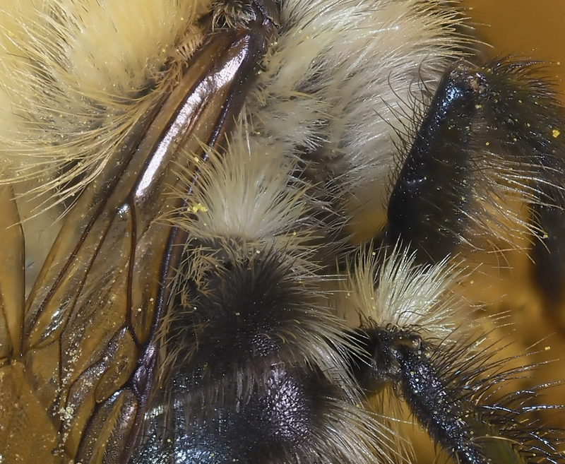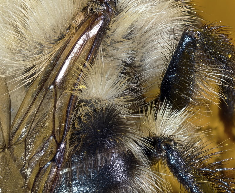 Ausschnitt auf dem Bild: Am Computer wird nach der RAW-Konvertierung mit DXO PhotoLab 6 und Stacking mit Helicon Focus 8 eine bessere Auflösung der einzelnen Haare erreicht.