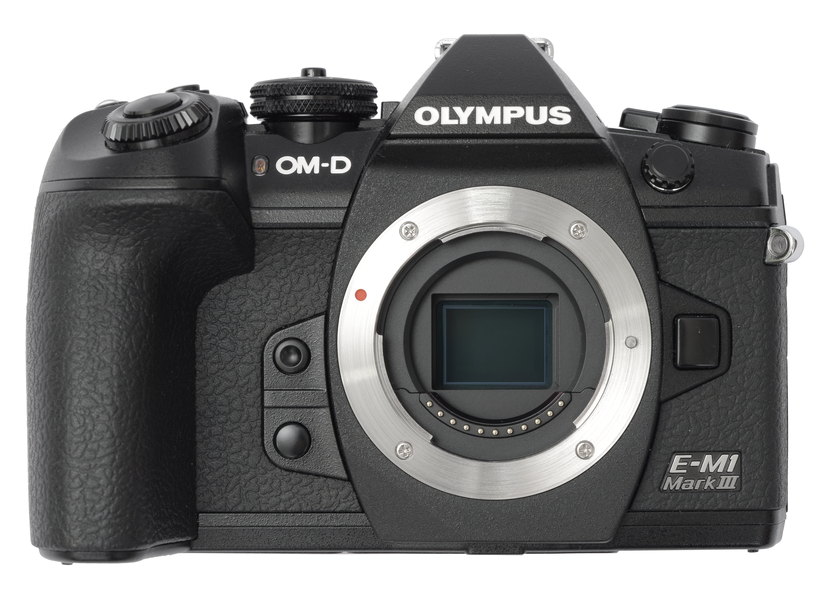 Olympus OM-D E-M1 III. Vorderseite mit Blick auf den 1" Sensor.