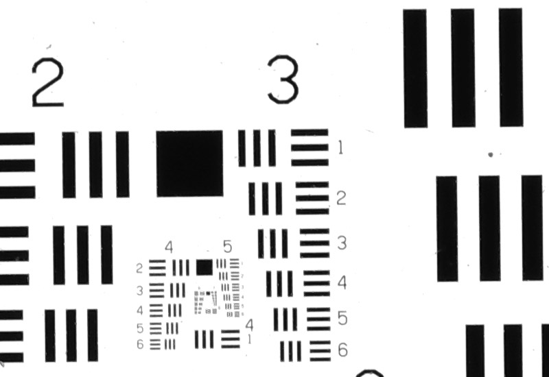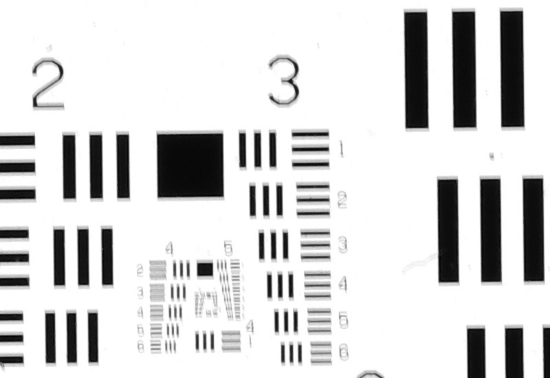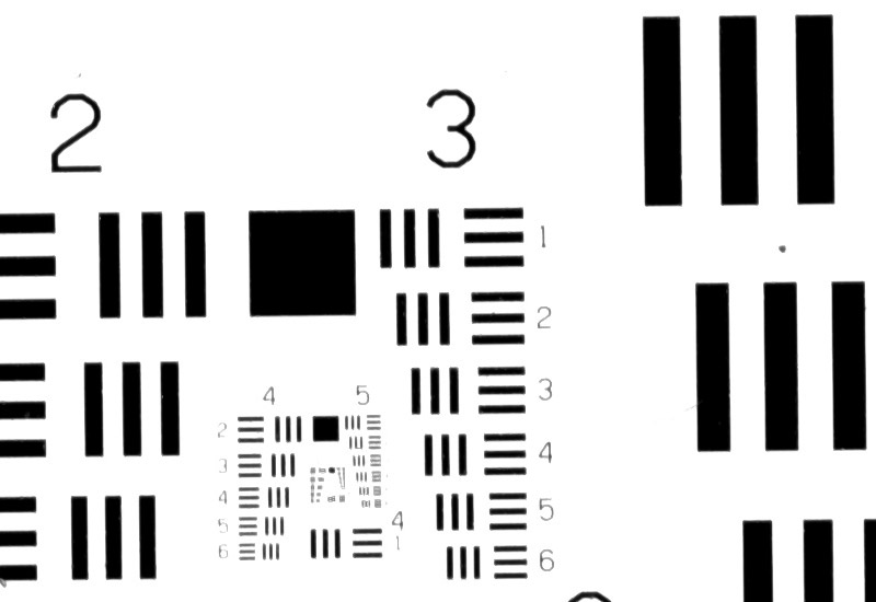 Das USAF 1951 - Resolution Testchart wurde mit der Pentax K-3 III mit einem Balgengerät und einem Rodenstock Rodagon D 75 mm Apo mit verschiedenen Belichtungszeiten fotografiert.
