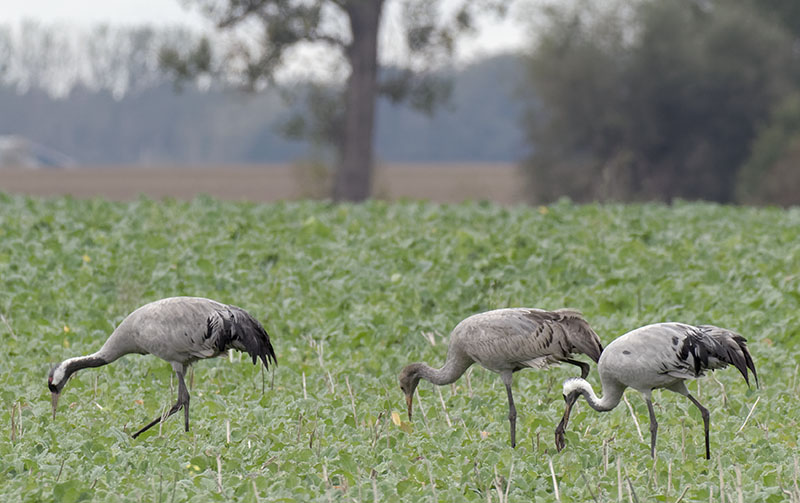 Kraniche auf einem Feld in Brandenburg. Pentax K-1 II mit DFA 150-450mm Telezoom, eingestellt auf 450 mm Brennweite