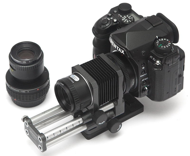 Pentax K-1 II am Balgengerät mit einen Rodenstock Vergrößerungsobjektiv