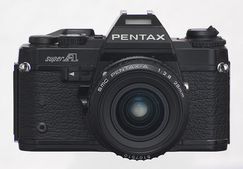 Pentax super A mit SMC Pentax-A 1:2.8 28mm Weitwinkelobjektiv