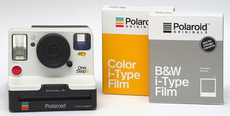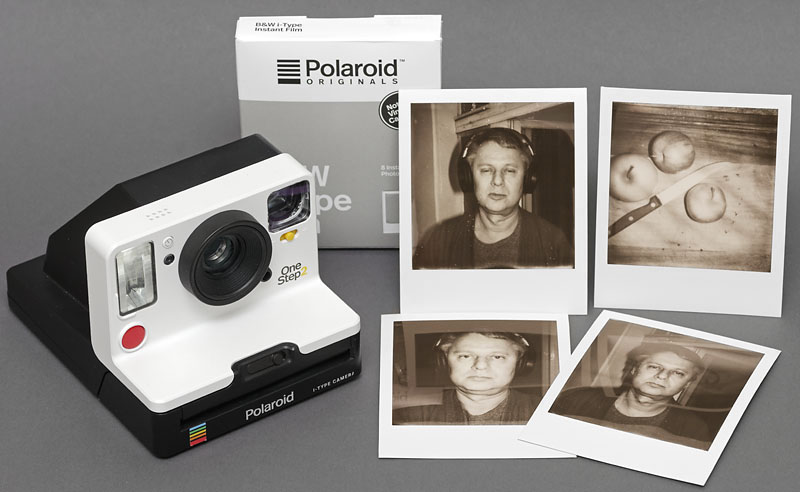 Polaroid OneStep2 mit B&W i-Type Film für Schwarzweißfotos.