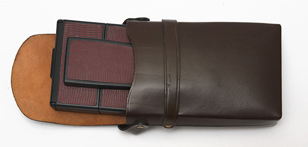 Zusammengefaltete Polaroid SX-70 im Etui
