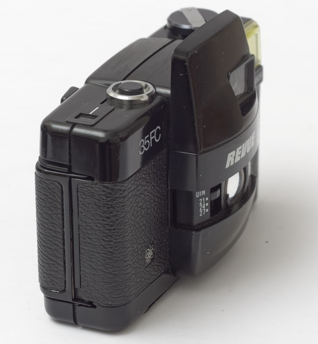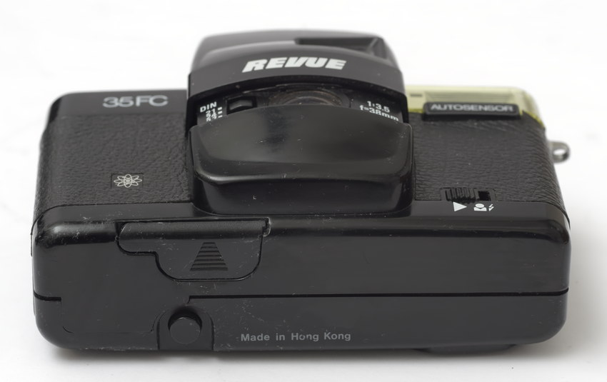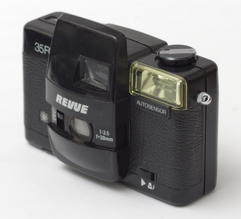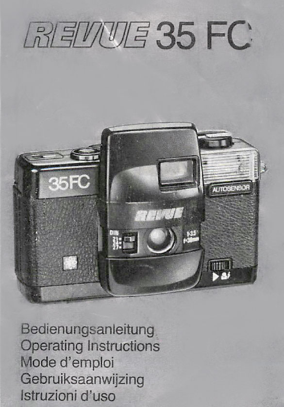 Die Revue 35 FC ist eine kompakte Sucherkamera für Kleinbildfilm. Mit ihren Abmessungen von 117 × 71 × 51 mm passt sie in jede Jackentasche und wiegt ohne Batterien und Film nur 230 g. Sie hat ein dreilinsiges 3,5 / 38 mm Objektiv. Nachteilig ist die Fixfokus Einstellung. Man kann die Schärfe nicht präzise einstellen. Laut Hersteller ist der Fokus für einen Bereich von 1,5 m bis unendlich eingestellt.