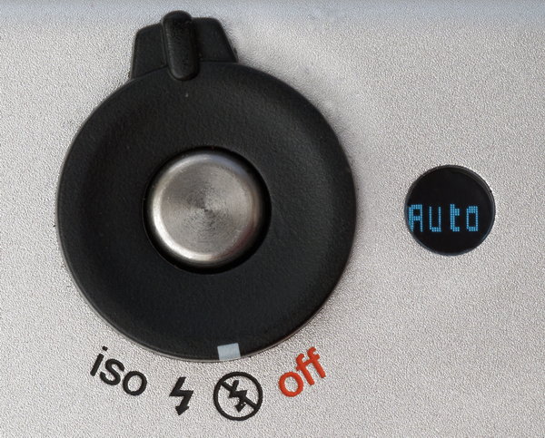 Das runde Mini-Display neben dem Auslöser erfüllt mehrere Zwecke.