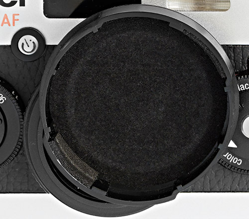 Der beigefügte Objektivdeckel hat ein Profil, das zum schwarzen Plastikring am Objektiv passt. Er ist auf zwei gegenüberliegenden Seiten etwas dicker und dort an den Außenseiten geriffelt. Er wird in einer bestimmten Stellung auf den Plastikring gedrückt. Zwei dünne Backen, wohl aus Moosgummi, sollen dafür sorgen, dass er dort bleibt. Beim Herausholen der Kamera aus einer Tasche ist mir der Deckel zweimal heruntergefallen und auch in der Tasche blieb er nicht immer auf dem Objektiv.