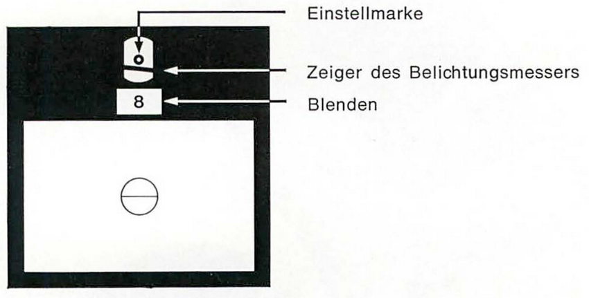 Ist durch Drehen des Blendenringes der Zeiger des Belichtungsmessers nicht auf die Nullmarke einstellbar, muß eine andere Belichtungszeit gewählt werden. Wenn eine bestimmte Blende für die Aufnahme erforderlich ist, kann man den Meßvorgang umkehren. Blende am Blendenring vorwählen, Blendenschließtaste eindrücken und durch Drehen an der Belichtungszeitscheibe B den Zeiger des Belichtungsmessers auf die Nullmarke abgleichen. Dabei muß sich eine gerastete Verschlußzeit ergeben, andernfalls ist die Blende etwas nachzuregulieren.