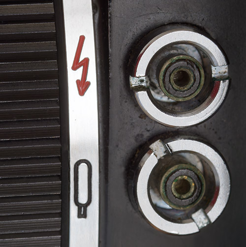 Es gibt zwei. Für Elektronenblitze ist die Buchse neben dem roten Blitz wichtig. Die andere spielt heute keine Rolle mehr.