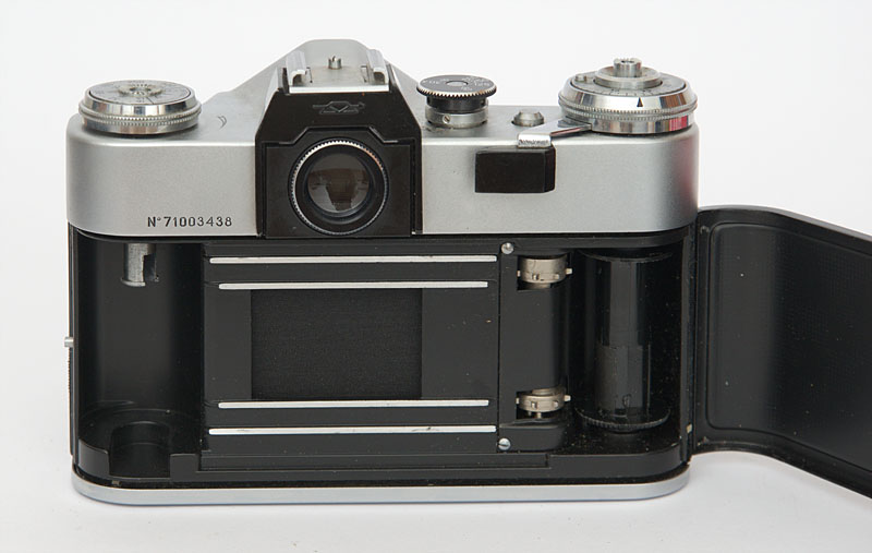 Der Schlitzverschluss dieser Kameras ist die hauptsächliche Schwachstelle. Der zweite Vorhang läuft nach vielen Jahren ev. nicht mehr knackig und vor allem nicht bis zum Ende. Dadurch schließt sich der Verschluss nicht ganz und ein Streifen des Films wird ständig belichtet. Das kann man leicht bei geöffneter Rückwand überprüfen. Die Kamera lässt sich spannen und auslösen. Dabei sieht man, ob der Vorhang bei allen Zeiten richtig funktioniert.Ledertasche