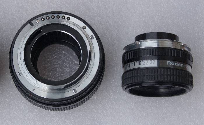Fertig! Mit dem scharfzeichnenden, verzeichnungsfreien 5,6 / 105mm Rodenstock Rodagon Vergrößerungsobjektiv kann fotografiert werden. Es wird per Hand scharfgestellt und abgeblendet.
