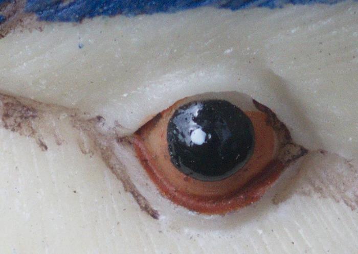 Für ein zweites Foto aus kürzerer Distanz wurde der Kopf des Vogels aus freier Hand mit Blende 11 aufgenommen. Um Verwacklungsunschärfen zu minimieren, wurde der ISO-Wert 800 eingestellt. Die Belichtungszeit betrug 1/500 Sekunde.
