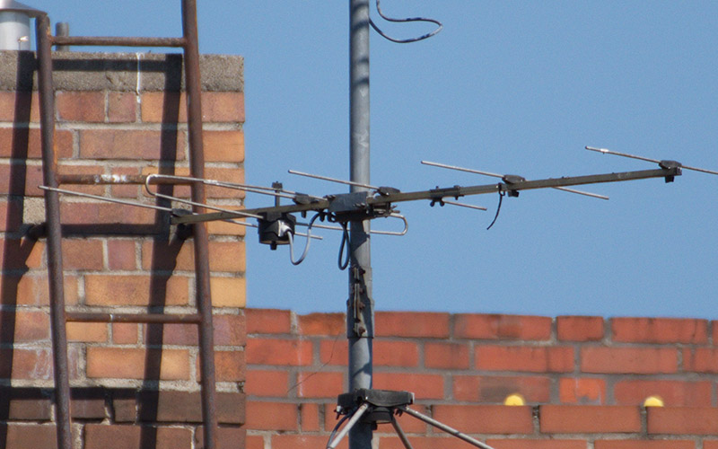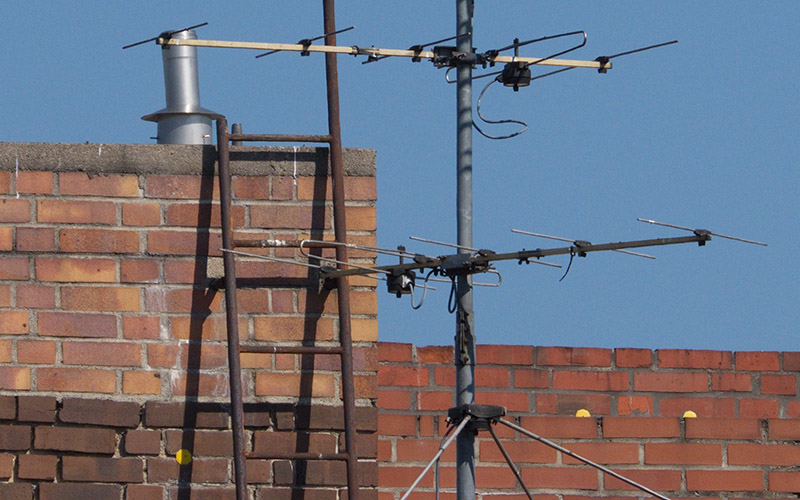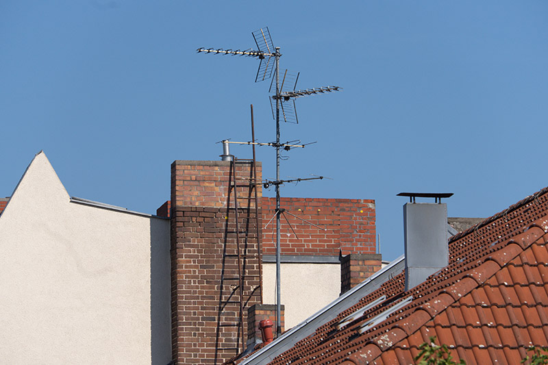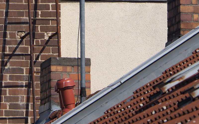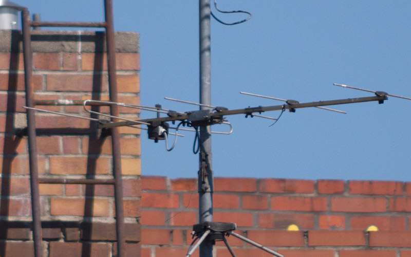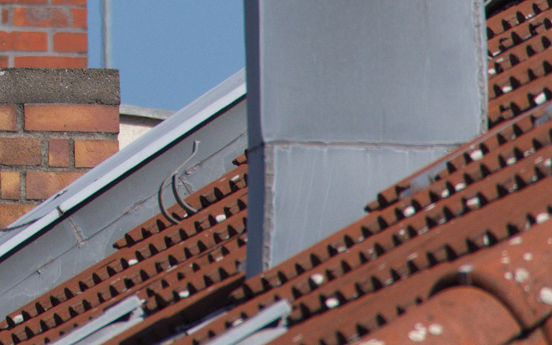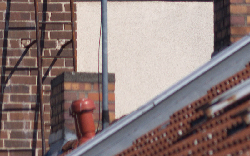 Vergleich mit dem smc PENTAX-DA 55-300mm f 4.-5.8 EDAls Testmotiv diente eine alte Fernsehantenne auf einem Hausdach. Um etwa 10:20 Uhr an einem warmen Tag im August flimmerte die Luft leicht, was beim Vergleich von feinsten Details zu berücksichtigen ist. Besonders am Kanten von Mauern.