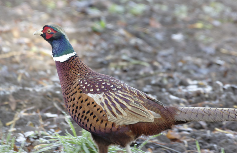 Dieser Fasan trappelte auf einem Feld wenige Meter von mir entfernt vorbei. Nur zweimal löste die Pentax K-3 in mehreren Sekunden aus während der Autofokus mehrmals den gesamten Scharfstellbereich durchlief. Keines der beiden Fotos war knackscharf. Mit Focus-Limiter wäre die Trefferquote besser ausgefallen.