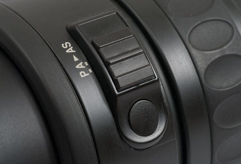 Wird der Drehring zum Zoomen nach vorne geschoben, erscheinen am Tubus die Wörter Power Zoom. Dann befindet sich der Zoom im elektronischen Modus. Zieht man den Drehring nach hinten, wird mechanisch gezoomt.