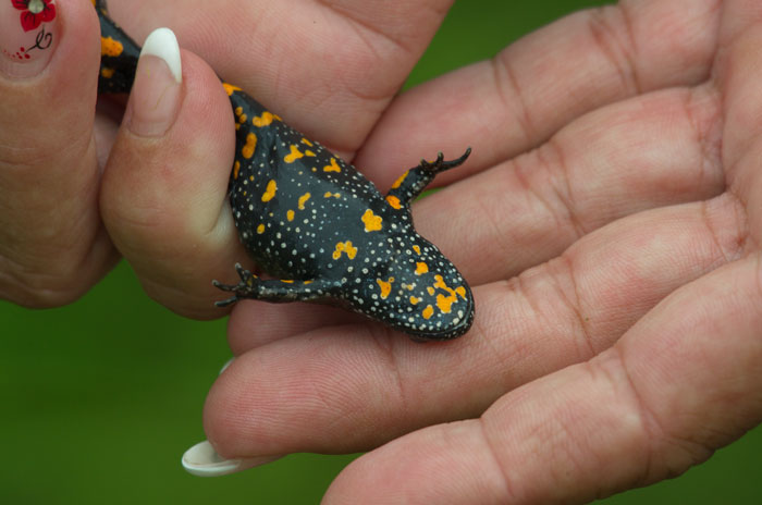 Rotbauchunke in der Hand. Näher konnte ich mit dem 400mm Teleobjektiv nicht ran. Blende 8 mit 1/400 Sekunde.