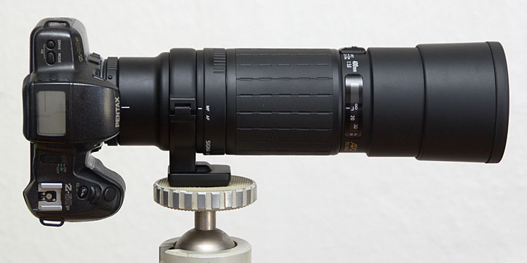 Sigma AF Apo 5.6 / 400mm Tele Macro an einer Pentax Spiegelreflex aus der Zeit des Films.