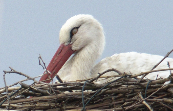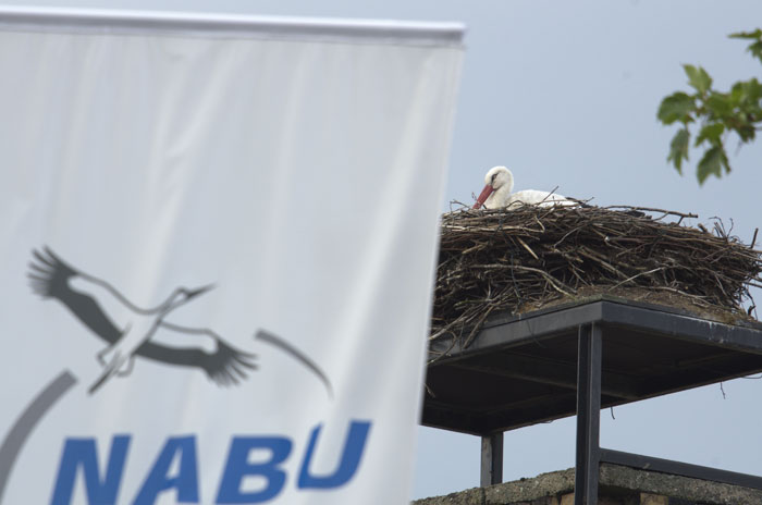 Auf einem weiteren Bild ist die Flagge der NABU Station mit einem Storch im Horst auf dem Dach zu sehen.