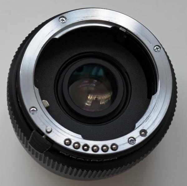 Der Telekonverter hat elektronische Kontakte zur Blendensteuerung. Die Programm-, Zeit- und Blendenautomatik sowie manuelles Blendeneinstellen funktionieren. Letzteres ist für moderne Objektive, die keinen Blendering haben, wichtig. Der Autofokus sowie das Melden der Brennweite funktionieren nicht.