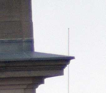 Das Auflösungsvermögen des betagten Tamron SP 200-500mm ist verblüffend gut. Die Ausschnitte mit den Fahnenmastspitzen zeigen, dass beim rechten Foto mit direkter Sonneneinstrahlung das Flimmern der Luft zugenommen hat und die Bildqualität minderte. Die Kanten der Masten sind etwas verschwommen und die Leinen nicht mehr sichtbar. Die Antennenstäbe auf dem Ausschnitt darüber zeigen den Qualitätsverlust durch eine Verschlechterung der Sichtbedingungen am deutlichsten. Sie verflüchtigen sich fast in der unruhigen Luft über den sich aufwärmenden Dächern.