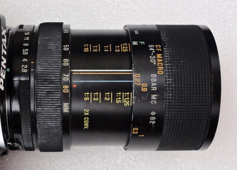 Es gibt zwei Skalen mit Vergrößerungsmaßstäben. Die Werte gelten für die Brennweite 80mm mit und ohne die Verwendung des 2x Telekonverters.