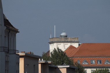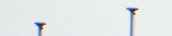 Die nachstehenden Aufnahmen wurden immer vom selben Standpunkt aufgenommen. Zwei Fahnenmastspitzen in ca. 550 Meter Entfernung auf dem Dach eines Hauses müssen für meine Tests von Fernobjektiven herhalten.Das stets mehr oder minder vorhandene Flimmern der Luft sowie auch Dunst beeinträchtigen die Ergebnisse.